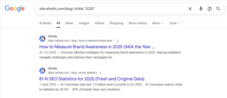 Wondering if Google has actually indexed your new blog posts? This is the most basic and essential operator to see which pages from a website are in Google's index. It helps you spot missing or deindexed pages.