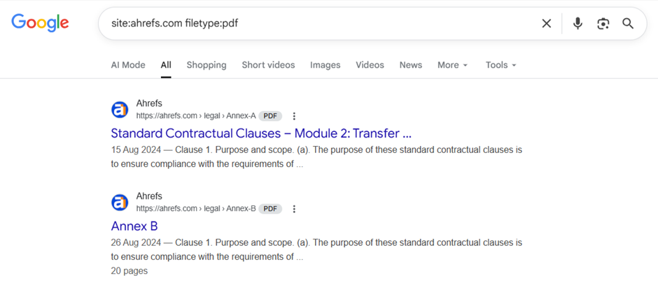 Looking for a competitor's whitepaper, report, or downloadable guide? This operator lets you search for specific file types on any website, uncovering a treasure trove of hidden resources.