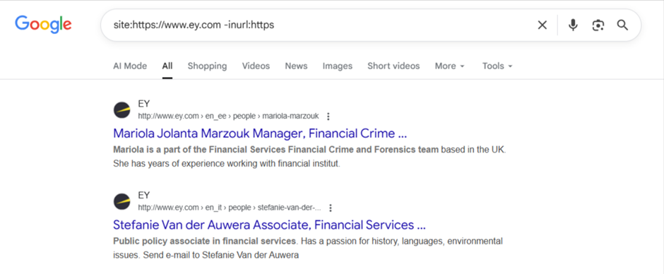 Security is critical for SEO and user trust. This operator helps you identify pages on your site that are still using the unsecured HTTP protocol instead of HTTPS.