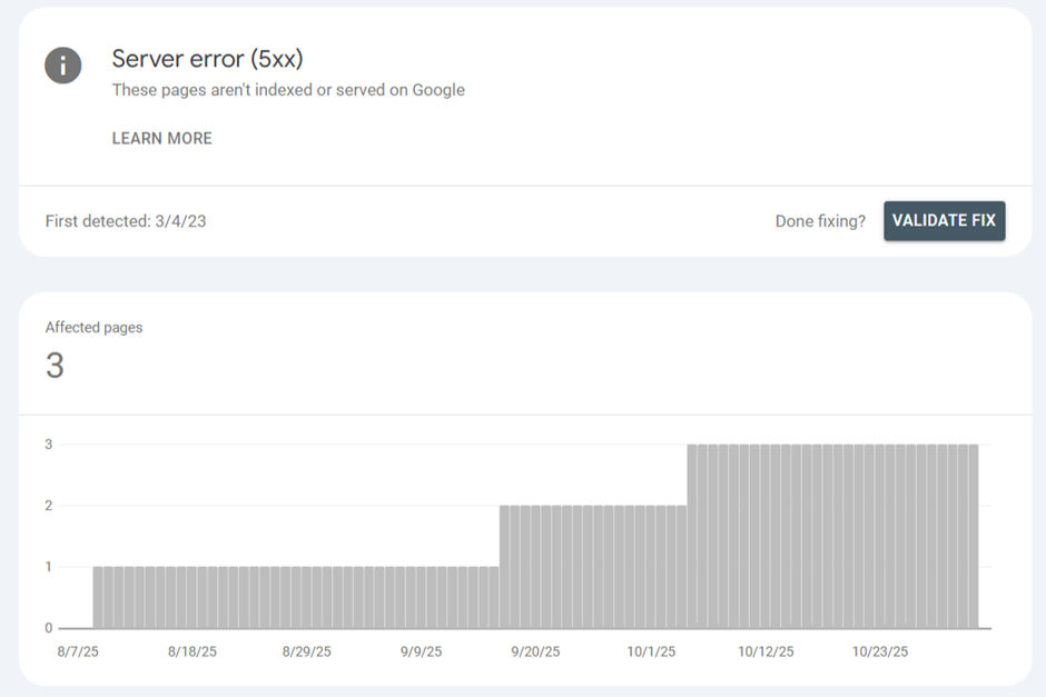 • What It Means: Your server was overloaded, under maintenance, or had a technical glitch when Googlebot came to visit. As a result, Google couldn't access the page.